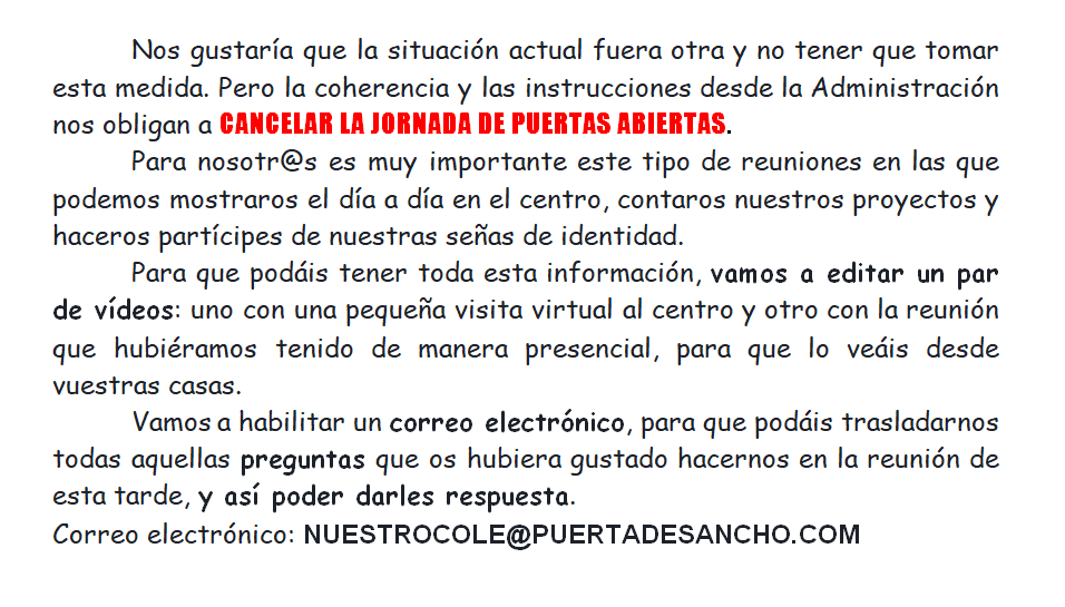 CANCELADAS LAS PUERTAS ABIERTAS