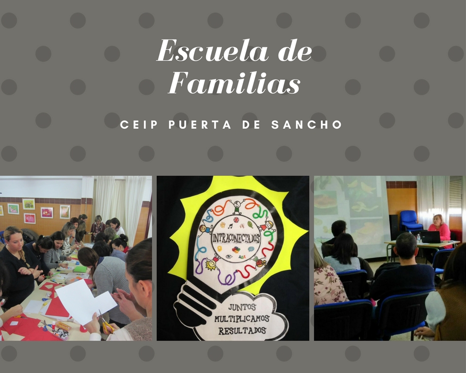 La Escuela de Familias es un espacio de información y reflexión dirigido a las familias del centro, como una herramienta que les ayude a desarrollar adecuadamente sus funciones educativas y socializadoras. Un lugar de encuentro para intercambiar experiencias y reflexionar sobre la educación de sus hijos e hijas de manera positiva. Un espacio donde poder expresar sus dudas a cerca de la crianza de sus hijos y sobre las diferentes etapas de su desarrollo.