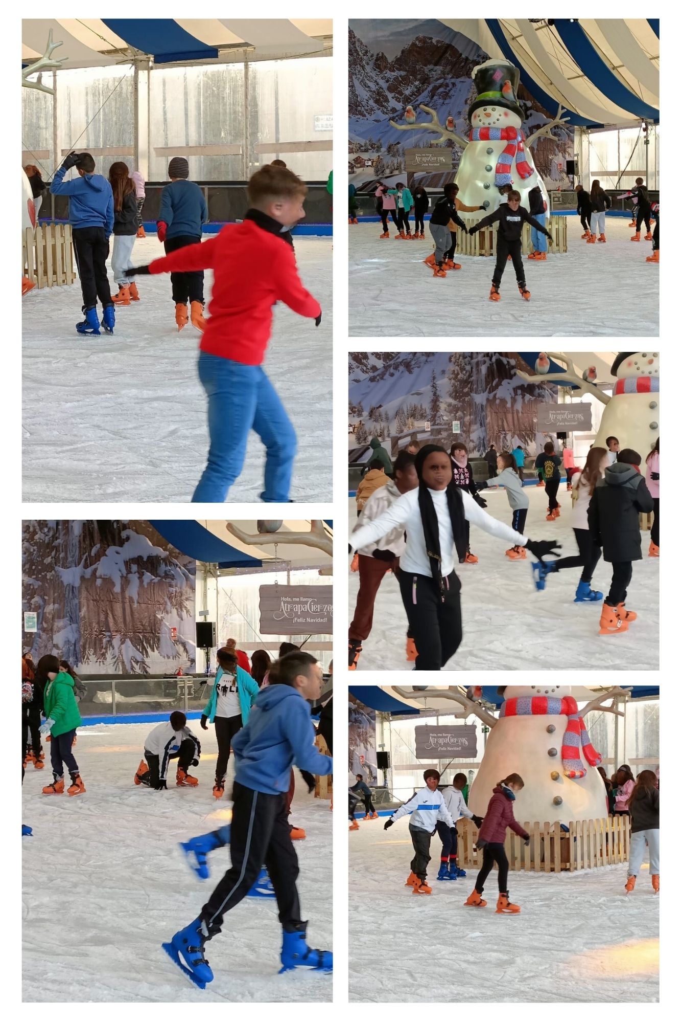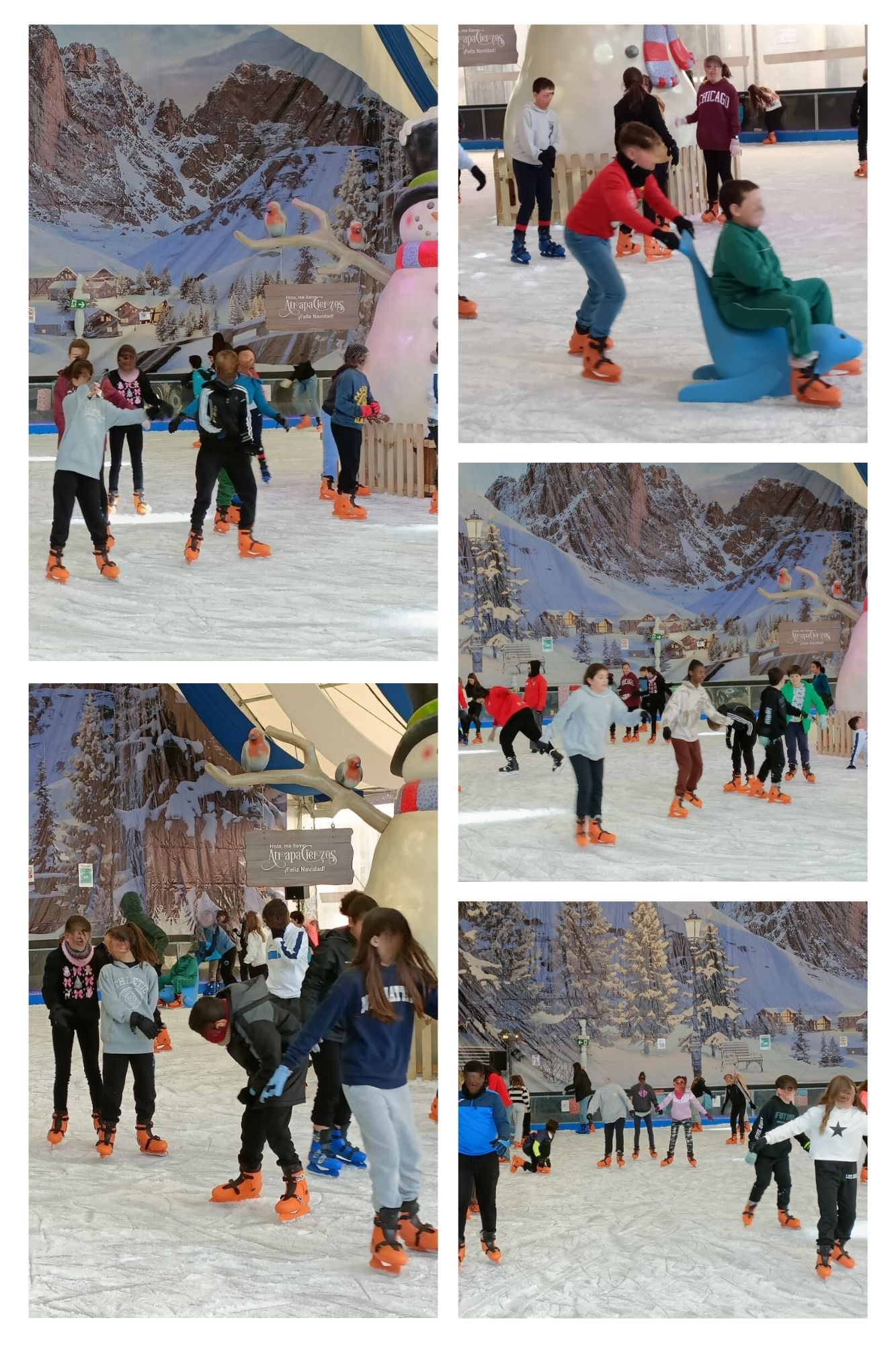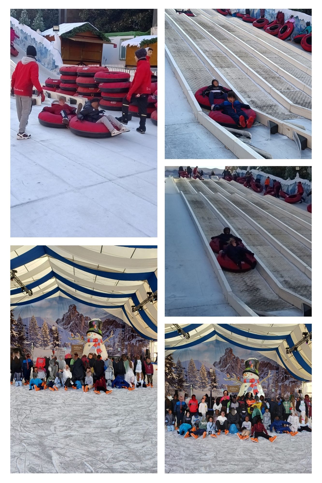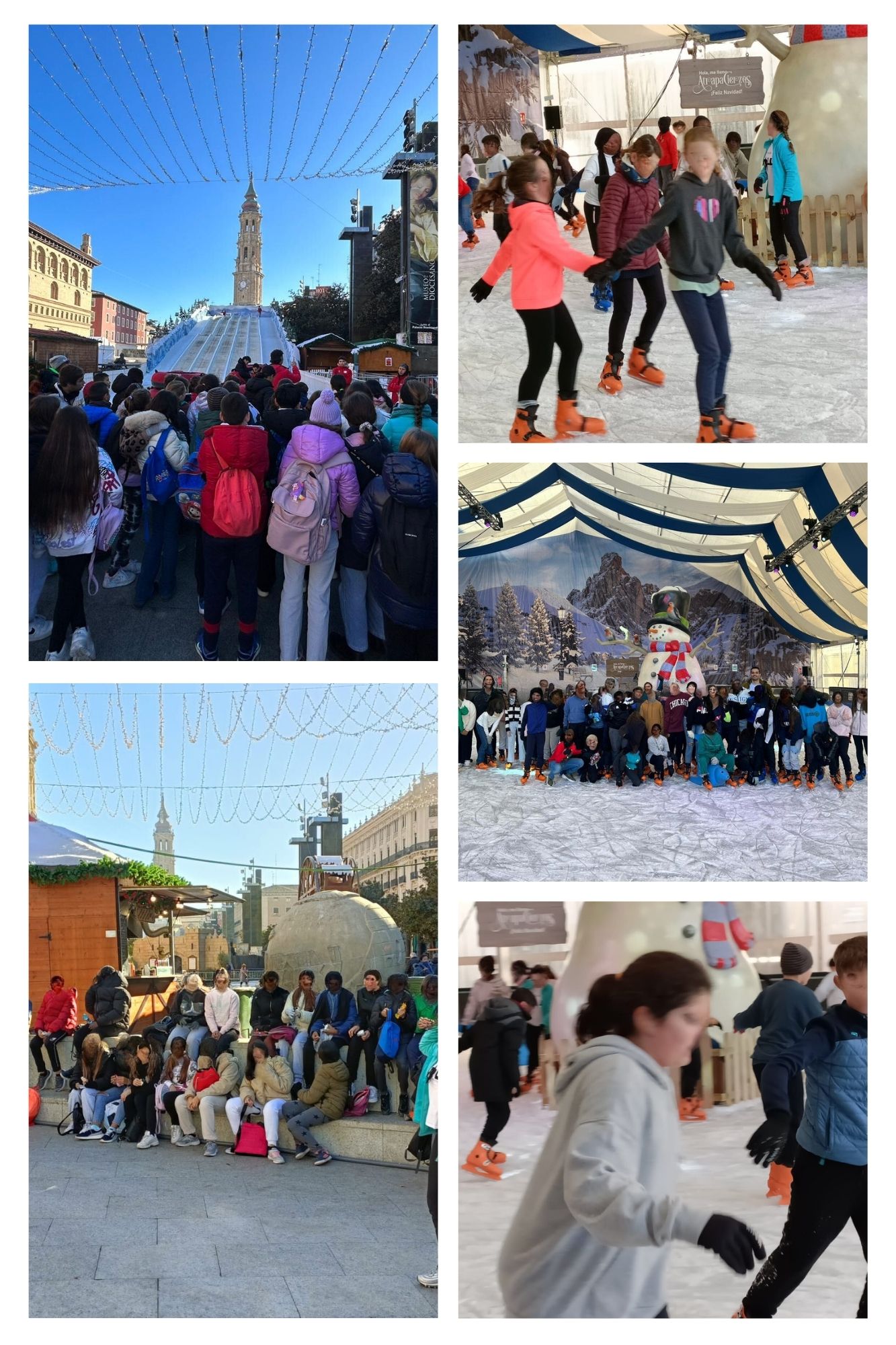 Hace unos días fuimos a patinar sobre hielo y a bajar con los trineos de la plaza del Pilar. Se lo pasaron súper bien.