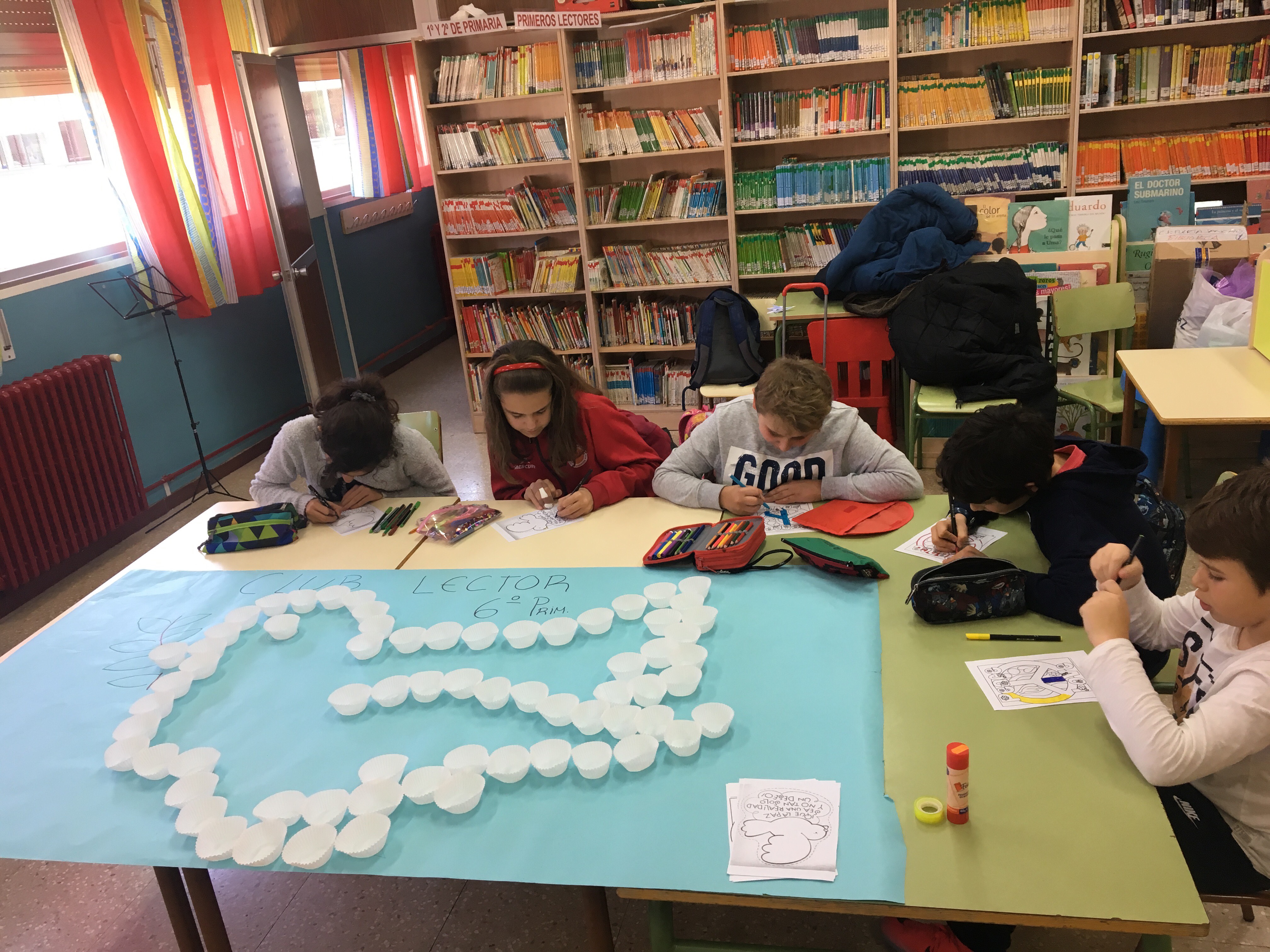 Os dejamos una foto de la sesión de Club lector de hoy con los alumnos de sexto de primaria. ¡Lo hemos pasado genial!